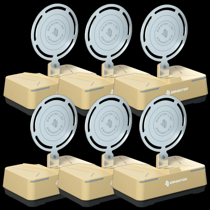 The Sentry 2 BT Wireless Target with Bluetooth & app integration! Connect to the Eshooter app for exciting shooting games, performance tracking, and target customization. Take training to the next level with interactive challenges and competitions. The same durability as Sentry 2, withstands 10,000+ airsoft shots and auto-resets.